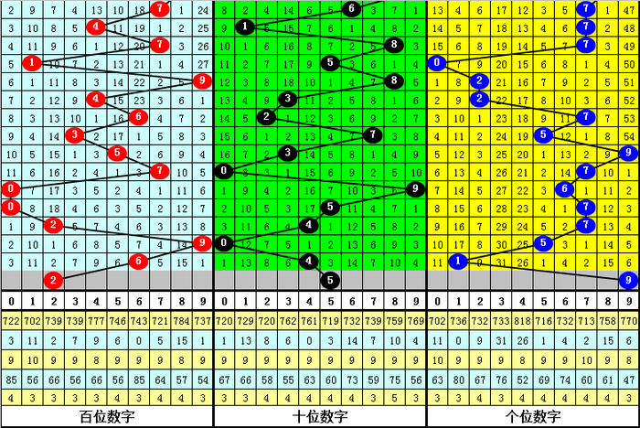 个位:上期奖号为1,近10期012路比为2:5:3,其中1路号遗漏1期再出,本期摒除1路号,重防0路号码,参考9。
