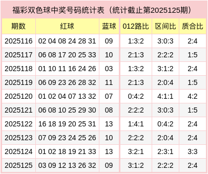 红球三区比2:2:2,质合比为2:4,012路比为3:1:2,蓝球为合数、0路号码。