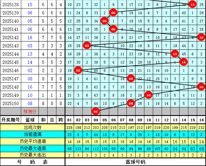蓝球号码分析:上期蓝球为08,开出2路号码,蓝球最近10期012路比为2:4:4,最近30期012路比为11:11:8,最近100期012路比为30:37:33,本期蓝球看好1路号码,四码蓝球参考01、04、10、13。