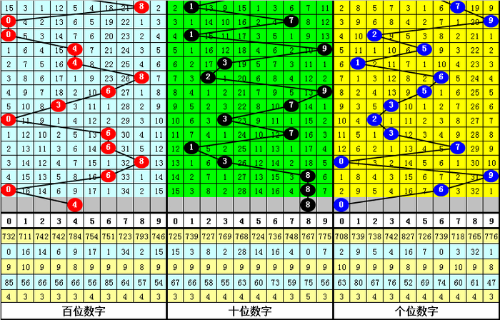 其中,号码0-9开出次数分裂为:号码0开出4次、1开出4次、2开出3次、3开出2次、4开出2次、5开出3次、6开出4次、7开出3次、8开出2次、9开出3次。