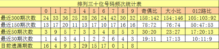 个位号码:前50期走势最活跃的号码为:5开出8个,8开出7个,6开出6个;走势最冷的号码为:1开出2个,0、2、7开出4个。个位号码大小比开出30:20,奇偶比开出24:26。本期个位摒除两码:3、7,珍摄号码4、5、9,胆码参考4。